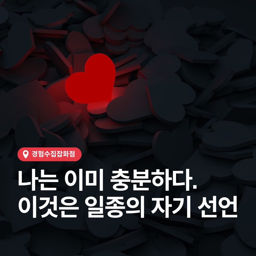 이 선언은 나를 사랑하고 존중하는 힘이 됩니다. 부족함을 인정하는 것, 나의 강점으로 삼을 수 있는 용기를 주고, 나 자신에게 자비를 베푸는 방법을 배울수 있죠. 결국, '나는 이미 충분하다'는 자기 선언이 나를 더 자유롭고 평화롭게 만들어줄거라 믿습니다.