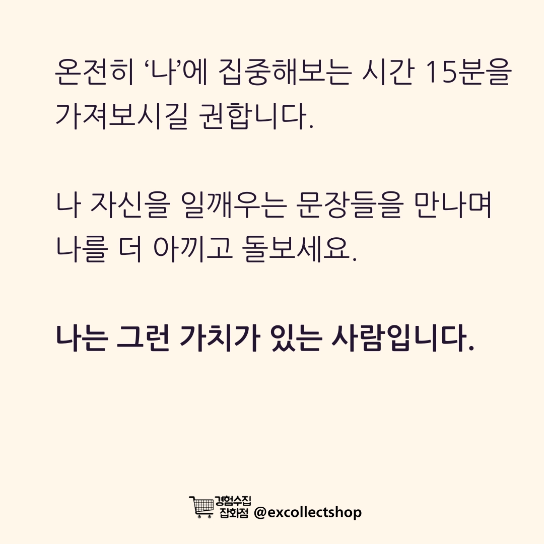오롯이 나로 머무는 시간 15분. 그 시간을 나에게 선물해 보세요!