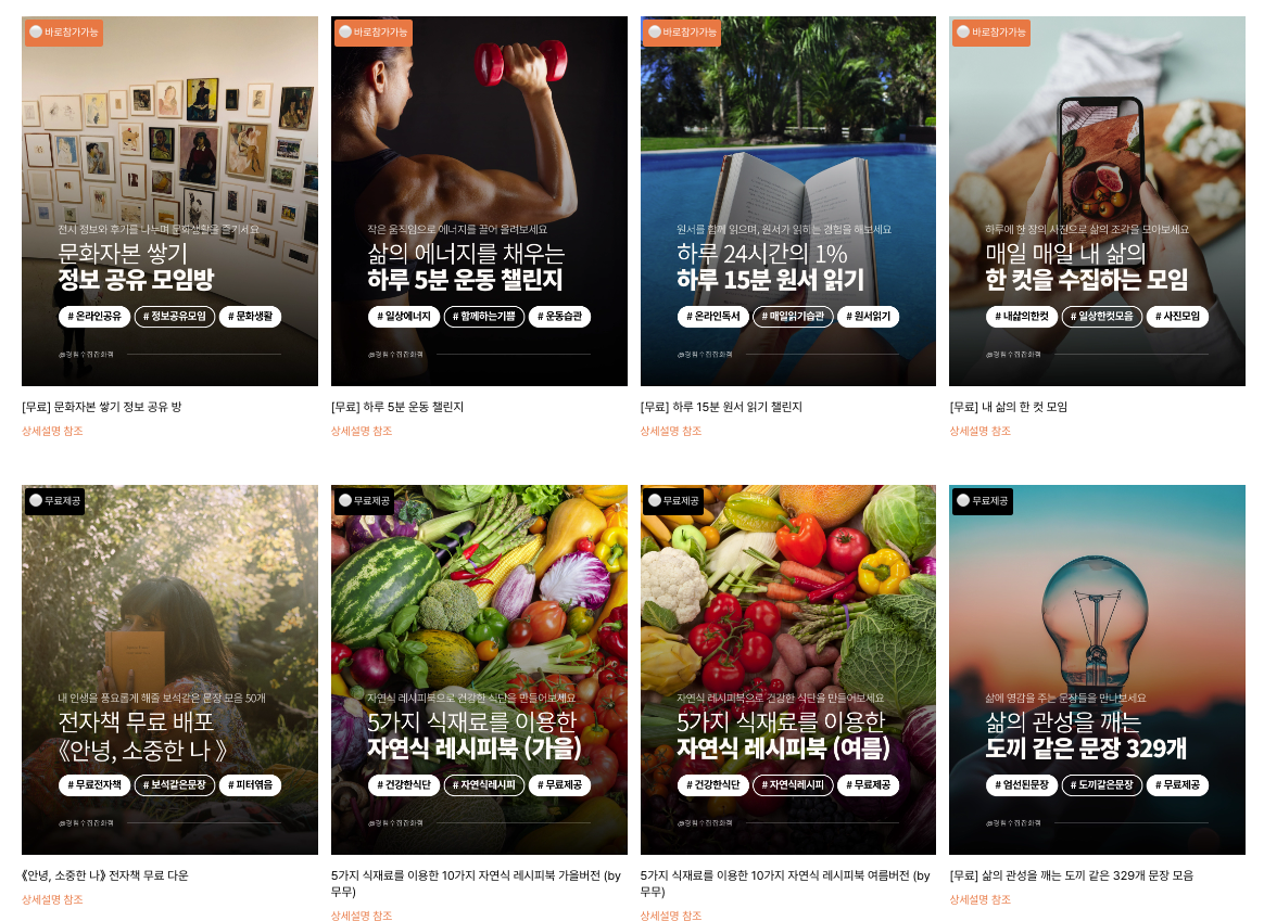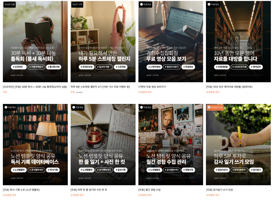 7년을 운영하고 모임을 이어오며 차곡차곡 쌓인 무료 자료들과 바로 참가 가능한 무료 모임들을 모아두었습니다. 확인해 보시고 관심이 가는 모임들은 참여도 해보시고, 자료들은 받아서 활용해보세요!