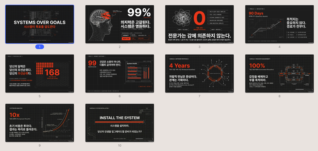 NotebookLM 기본 사용법 뿐만 아니라 슬라이드를 생성할때의 지침(프롬프트)도 다양하게 공유 드립니다. 여기서 스타일 지침을 다르게 하면 아래 이미지들 처럼 같은 내용이라도 전체적인 스타일이 완전 달라집니다.